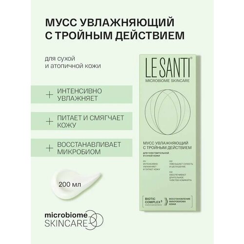 LE SANTI мусс увлажняющий С тройным действием - для чувствительной, сухой и очень сухой кожи лица и тела, в том числе склонной к атопии.