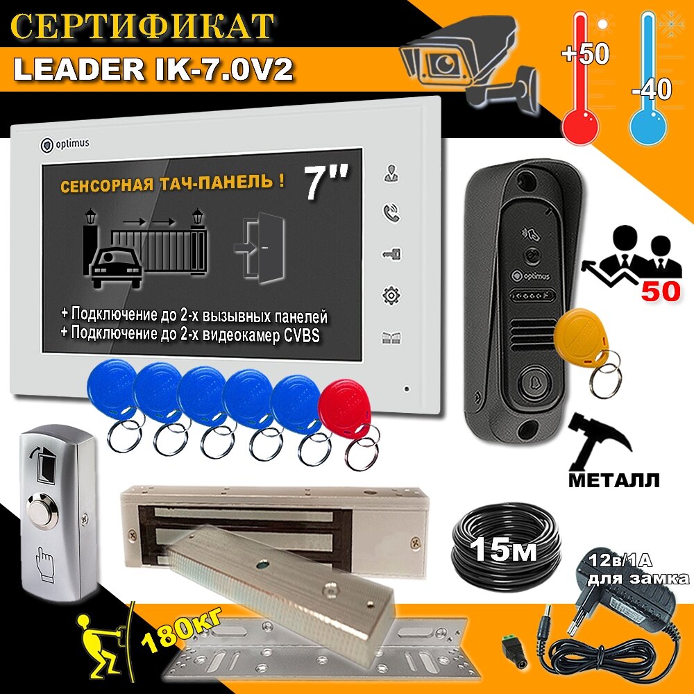 Комплект системы видеоконтроля (монитор 7 дюймов в белом корпусе) и управления доступом (СКУД) с электромагнитным замком, встроенный считыватель и контроллер в уличную видеопанель для открытия замка с помощью брелоков, электромагнитный замок, блок питания для открытия замка, брелоки и кнопка выхода но, металл. Кабель для подключения в комплекте. Инструкция прилагается.