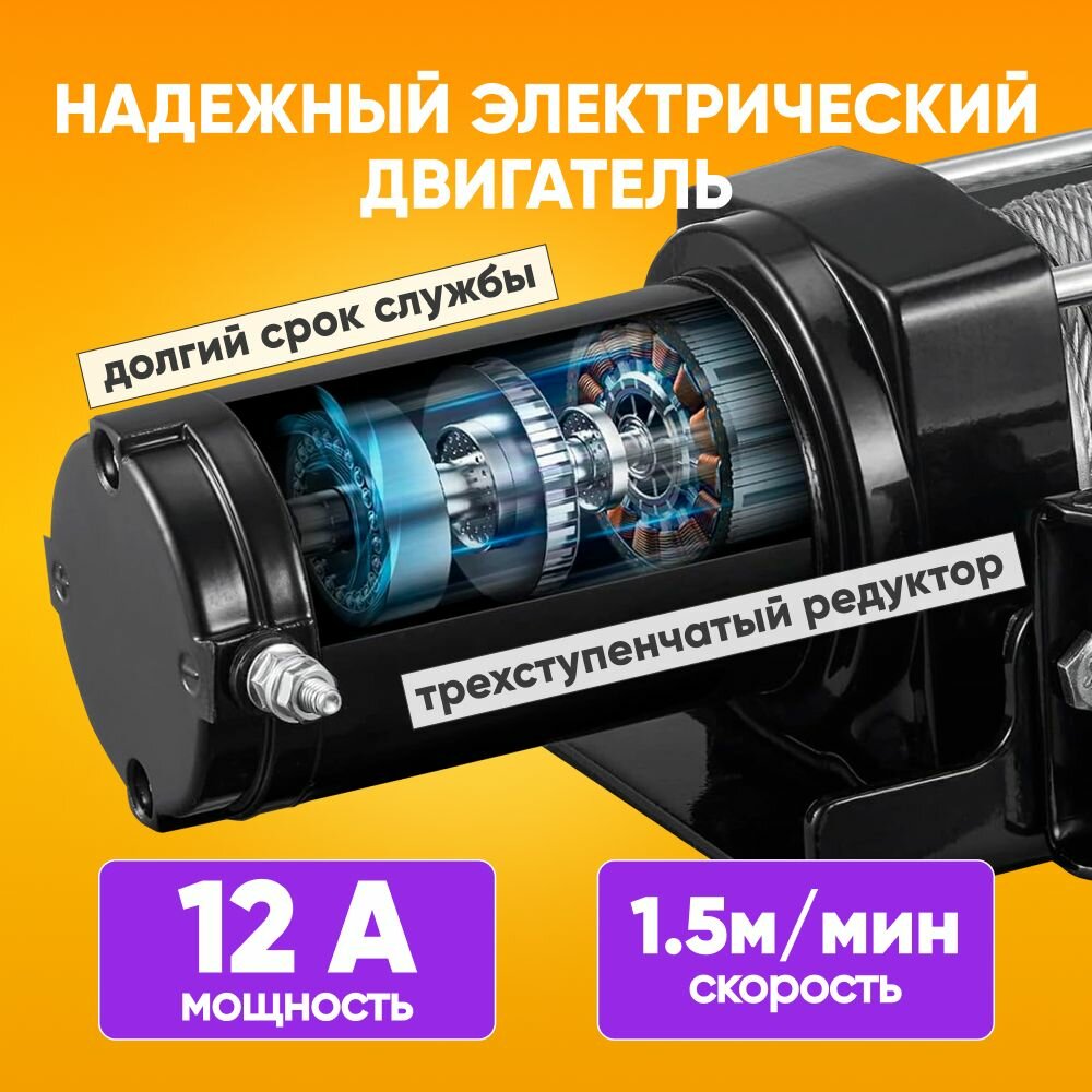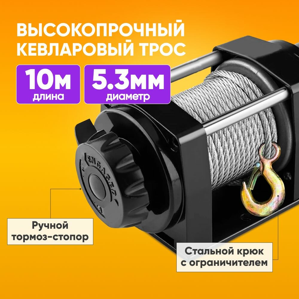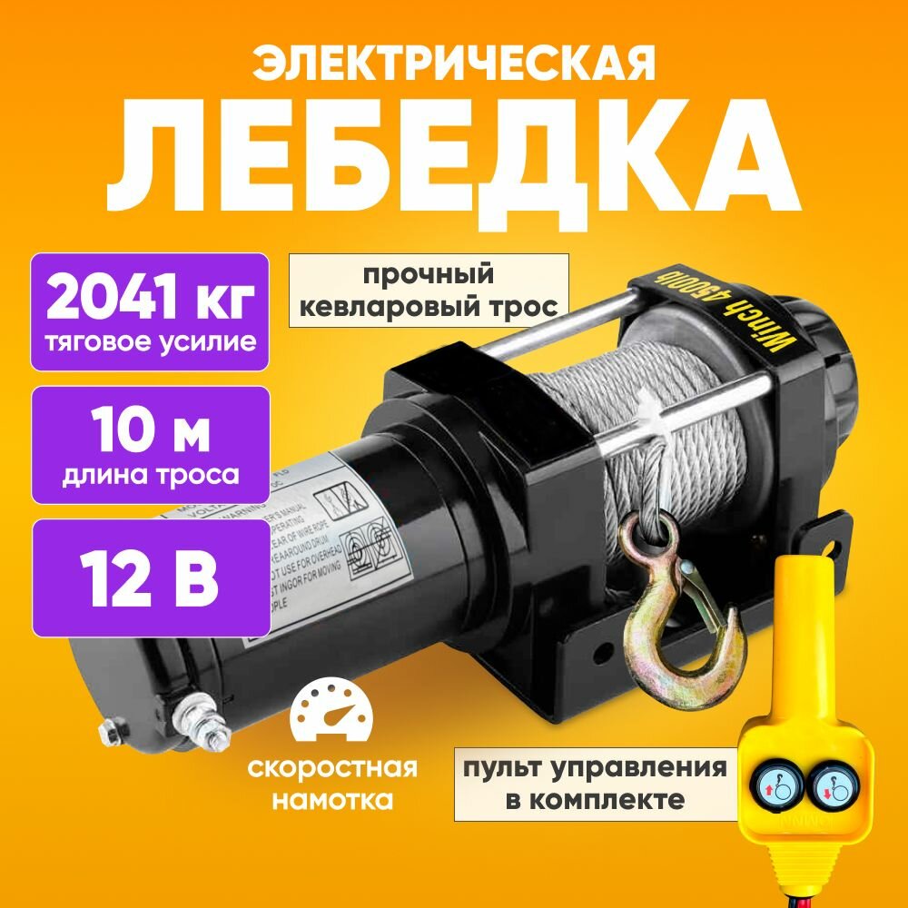 Лебедка электрическая 12В с тяговым усилием 2041 кг, 10м длина троса / Электрическая машина 12А с кевларовым тросом, пульт управления в комплекте / Направляющие и болты в комплекте: сравнение цен, характеристики, фото, актуальное наличие и цены.