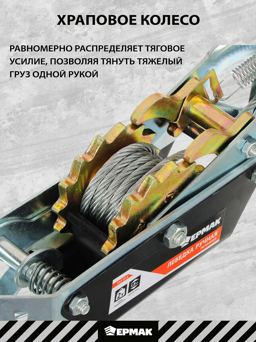 ручная рычажная лебедка, компактная длина троса 1,8 м, максимальная нагрузка 2т