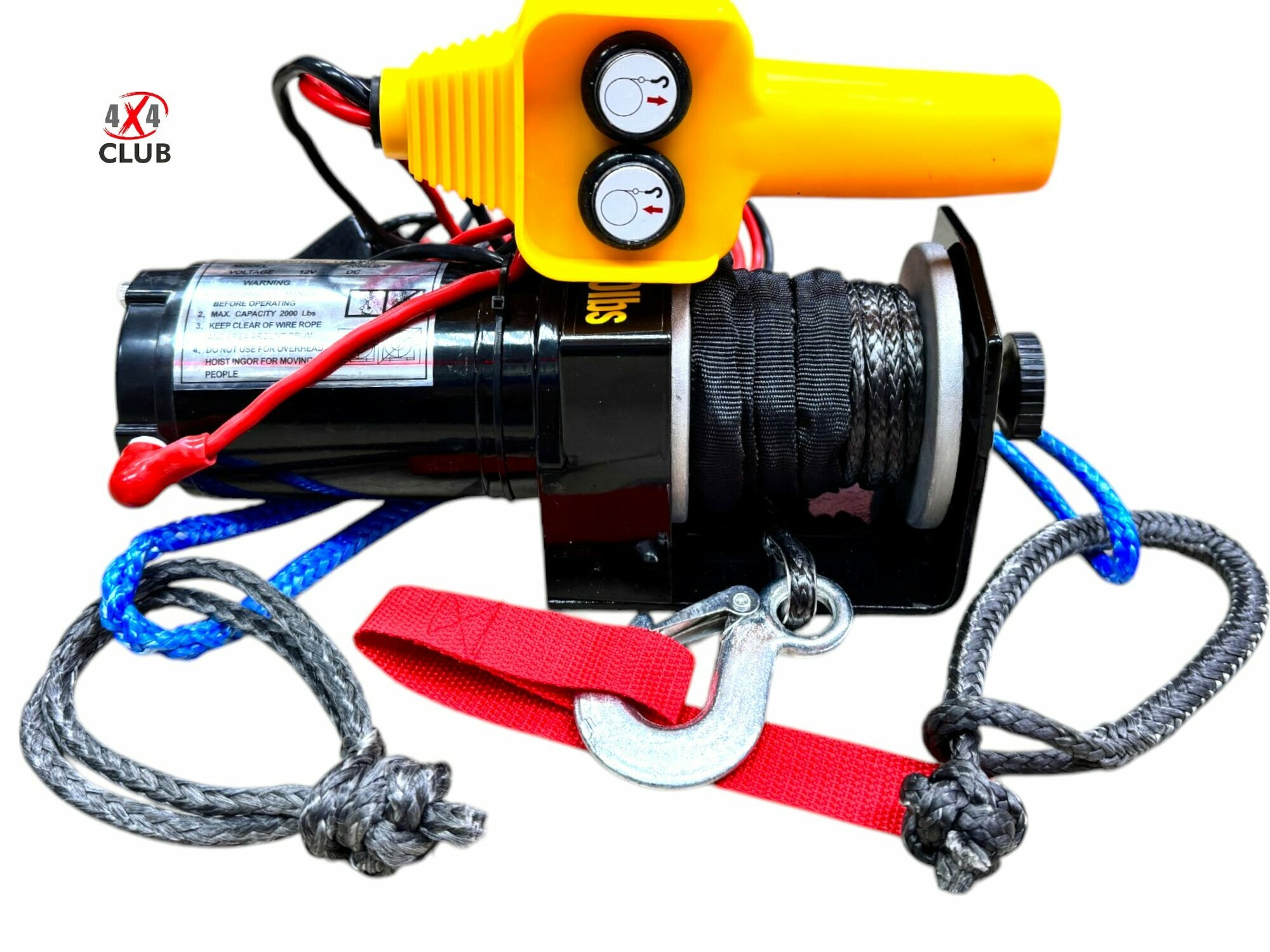Лебедка переносная "Electric Winch 2000" разработана для быстрой установки на снегоход или квадроцикл и подключения в электро цепи. Комплектация: Лебедка EW 2000 - 1 шт Трос - 1 шт Крюк - 1 шт Пульт управления проводной- 1 шт