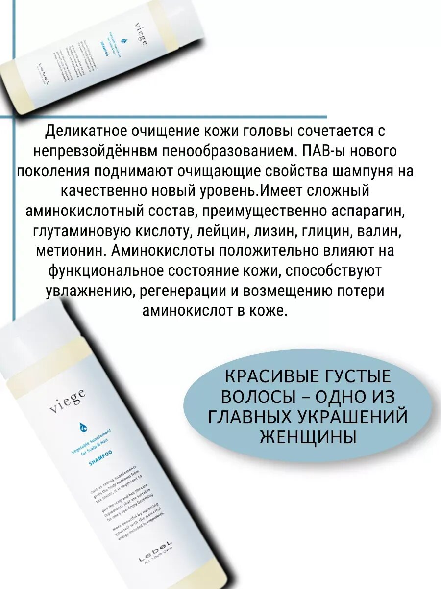 | Способ применения | необходимое количество шампуня (3-10 мл в зависимости от длины волос) предварительно распределить между ладонями и нанести на влажные волосы и кожу головы, помассировать, добавляя воду до образования плотной пены. Смыть теплой водой. При необходимости повторить |