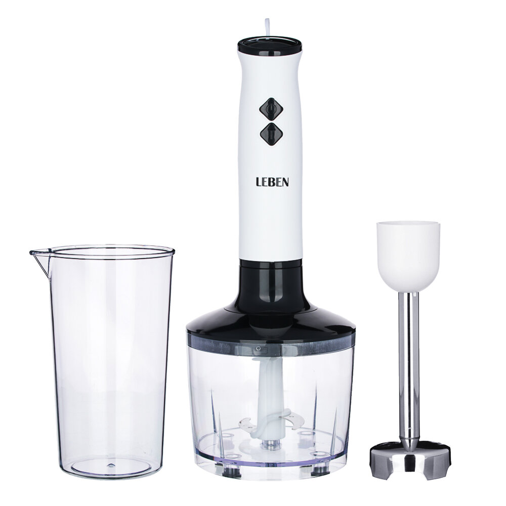 Купить LEBEN Блендер погружной 200Вт, чоппер 400 мл, мерный стакан 1000 мл, 2 скорости, нерж. сталь с доставкой по всей России.