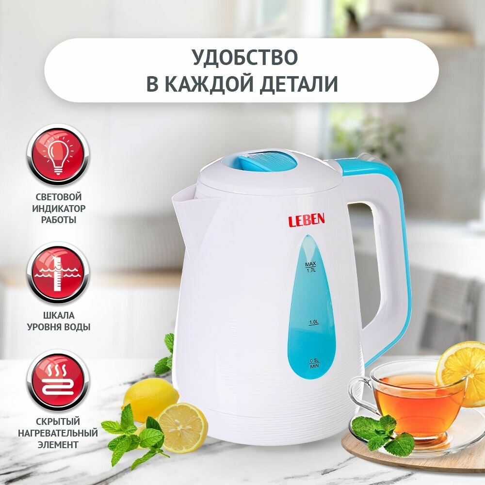| Дополнительная информация | Преимущества: Скрытый элемент нагревания,шкала уровня воды, съемный фильтр от накипи, открывание крышки одним нажатием, автоматическое отключении при закипании,сетевой индикатор работы,защита включения без воды,вращение на 360С корпуса. |