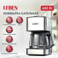 Купить Кофеварка капельная 680 Вт LEBEN, стеклянная колба 0, 8 л, функция самоотключения с доставкой по всей России. Кофеварка капельная 680 Вт LEBEN, стеклянная колба 0, 8 л, функция самоотключения: сравнение цен, характеристики, фото, актуальное наличие и цены.