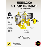 Модель лебёдки TSA 300 Грузоподъемность с блоком, кг 600 Скорость подъема, м/мин 15 Длина кабеля управления, м 3 Условия эксплуатации -20 + 40С, Лёгкий, S3-30%, У2 (Использовать под навесом) Вес, кг 45 Двигатель подъема, кВт 1,5 Тормоз Электромагнитный, надёжно блокирует груз при отключении питания Охлаждение Вентилятор на валу двигателя Крепление На площадке с помощью анкерных болтов на пол, на стену или на потолок Гарантия 12 месяцев Грузоподъемность, кг 300 Длина троса (м) 60 Диаметр троса (каната), мм 6 Питание, В 380 Габариты, мм 550х310х300