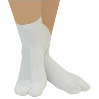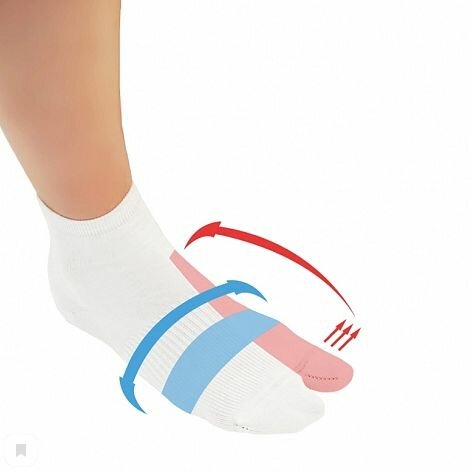 Специальные носочки комфортно устанавливают большой палец стопы в физиологически правильное положение, что помогает снизить боль и воспаление в области сустава большого пальца стопы, уменьшить усталость и дискомфорт при ходьбе, предотвратить дальнейшее развитие заболевания и рост "косточки". Носки VALGU разработаны ведущим немецким производителем ортопедических изделий компанией ORTMANN специально для лечения "косточки" на ноге. Принцип действия основан на профессиональном методе тейпирования. Это позволяет удерживать кости и связки стопы в правильном положении. Ноги чувствуют себя комфортнее и меньше устают при ходьбе. Носочки помогают восстановить красоту и здоровье ваших ног. Носки имеют специальные эластичные области, которые действуют по принципу профессионального тейпированияПродольная область - деликатно отводит и способствует возвращению большого пальца стопы в физиологическое положение. (на картинке – красным цветом). Поперечная область - фиксирует средний отдел стопы (плюсну) и способствует уменьшению распластанности переднего отдела стопы (на картинке – синим цветом). Внешне носочки выглядят как обычные носки. Они удобные и их можно носить всем без исключения! Подходят для мужчин и для женщин, можно носить беременным и детям, людям любого возраста. Эффективны в послеоперационном периоде! Носочки идеально сочетаются с любой повседневной обувью. Но стоит на время лечения оказаться от каблуков, высота которых превышает 3 см. показания Целесообразно применять ортопедические носки не только для лечения, но и для профилактики вальгусной деформации большого пальца, а также некоторых других патологических состояний ног: искривление первого пальца, приводящее к деформации всей стопы; врожденная или приобретенная форма поперечного плоскостопия; усталость и боль при длительной ходьбе; стоячая работа. Регулярное использование ORTMANN VALGU помогает предотвратить дальнейшее искривление большого пальца стопы, уменьшить болезненность в ногах. Максимальный лечебный эффект достигается при комплексном подходе к лечению и выполнении остальных рекомендаций. Преимущества Ношение носков ORTMANN VALGU благоприятно воздействует на состояние стоп: фиксируют ступни в анатомически правильном положении; укрепляют мышцы и связки стоп; улучшают кровообращения и питание тканей подошвы; уменьшают болевые ощущения; не препятствуют выполнению обычных повседневных действий (ходьбе, бегу, гимнастике). Носки рекомендуют применять в любом периоде заболевания, но наиболее эффективно использование на ранних стадиях, когда деформация минимальна. Наибольший эффект достигается при ношении в широкой или домашней обуви. Также возможно использование без обуви (дома). Не используются во время сна. Правильное физиологическое положение улучшает циркуляцию крови. Усиливается приток питательных веществ, кровообращение. Деформированный сустав и костные структуры не сдавливают мягкие ткани и нервные окончания. Особенностиустанавливают большой палец стопы в физиологически правильное положение; снижают боль и воспаление в области сустава большого пальца стопы; уменьшают усталость и дискомфорт при ходьбе; помогают предотвратить дальнейшее развитие заболевания и рост "косточки". СОСТАВ51% хлопок, 43% полиамид,6% эластан Комплектность: 1 пара в упа