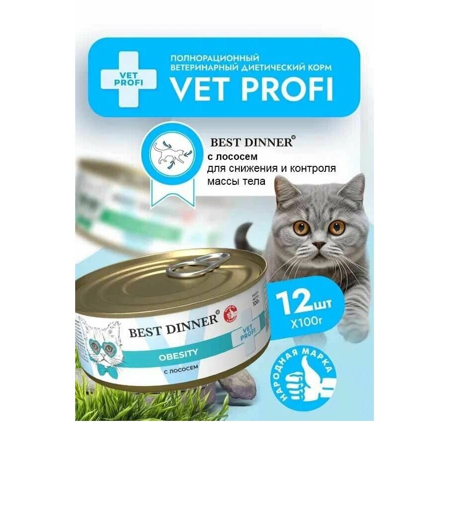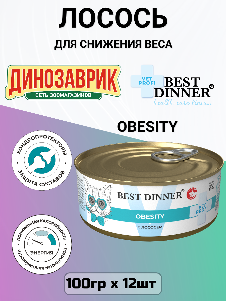 Лечебный корм Best Dinner Vet Profi Obesity для кошек для снижения и контроля избыточной массы тела Лосось 12шт х 100г: сравнение цен, характеристики, фото, актуальное наличие и цены.
