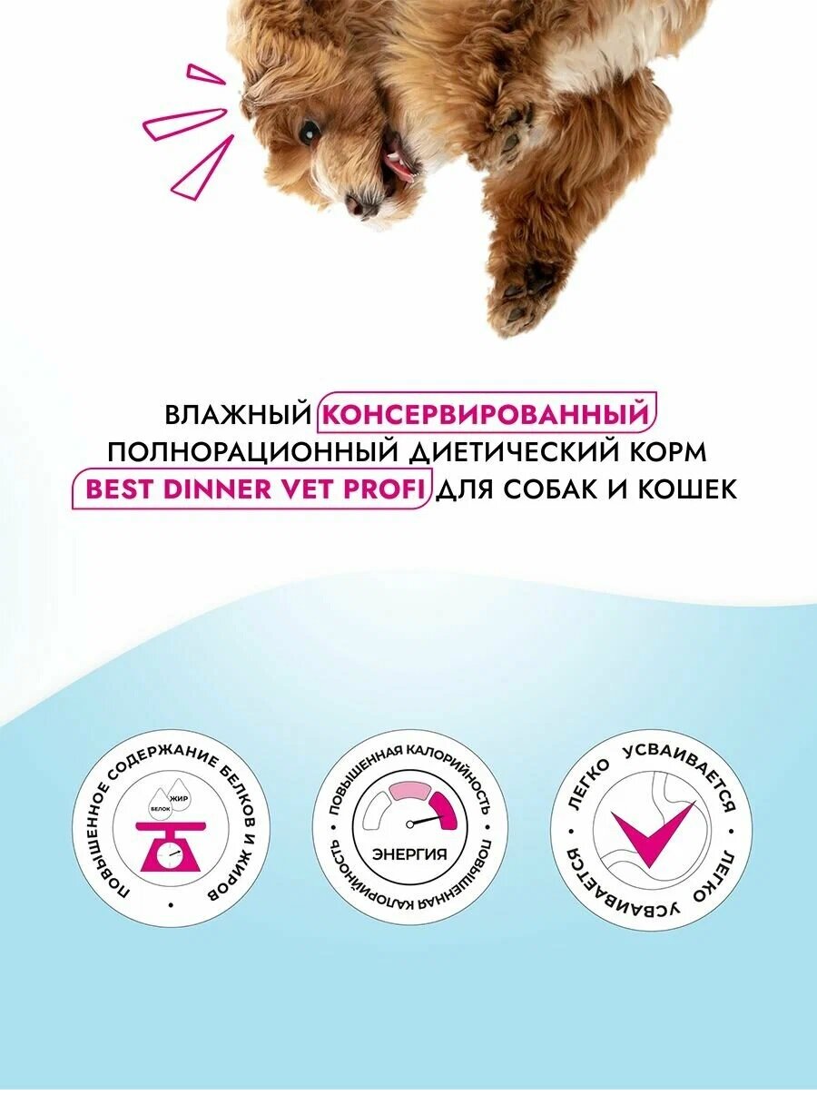 Лечебный корм Best Dinner Vet Profi Recovery для кошек и собак при послеоперационном восстановлении 10шт х 85г: сравнение цен, характеристики, фото, актуальное наличие и цены.