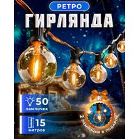 Ретро гирлянда создаст романтическую атмосферу и уют загородных домов и участков, беседок, веранд, террас, кафе, ресторанов, квартир, балконов и офисов. Уличная гирлянда является морозостойкой, что позволяет ей работать в -40 градусов, имеет прочные провода с защитой от дождя, снега, пыли. Декоративная гирлянда в ретро стиле является одним из самых популярных решений дизайнеров. Гирлянда лампочки служат как украшение и декорации для фотостудии. Гирлянда для фото придаст приятную и уютную обстановку на фотосессии. Новогодняя гирлянда с лампочками это прекрасный декор для дома, для сада, для улицы. Гирлянда 7,5 метров украсит квартиру на новый год и рождество. Декор для сада и дома преобразит террасу и беседку. Декоративная гирлянда лампы послужит прекрасным новогодним украшением на елку. Гирлянда лампочки на дом с европейской вилкой работает от сети. От такого уличного садового освещения беседка преобразится, свет лампочек похож на цвет костра, что создает неповторимую атмосферу. У ламп накаливания небольшой нагрев, и гирлянду декоративную можно прислонить к стене или другим поверхностям высокой плотности. Создает праздничный антураж ретро гирлянда лофт на день рождения, свадьбу, свидание, юбилей, выпускной, день Святого Валентина, 8 марта, 23 февраля. Электрогирлянду белт лайт владельцы ресторанов, кафе, магазинов, салонов красоты и торговых центров используют для привлечения внимания своих клиентов. Электрогирлянду легко и удобно закрепить на крючок цоколя. Гирлянда на улицу интерьерная имеет длину 7,5 метров, можно соединить несколько изделий между собой с помощью систему end to end. В комплекте идет 2 запасные лампочки.