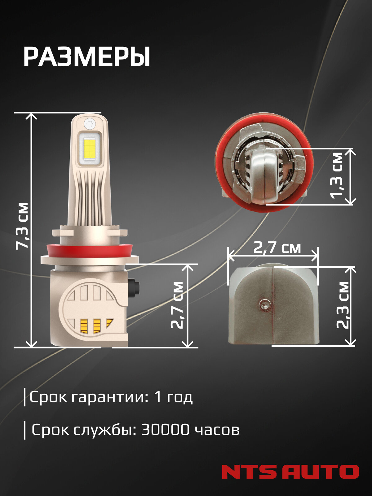 Выбор автолампы для своего автомобиля – это ответственный момент, который влияет не только на вашу безопасность на дороге, но и на комфорт водителя и пассажиров при езде в темное время суток. Светодиодные LED-лампы головного света A95 H11 4300K – подойдут для линзованной оптики, а также для рефлекторных фар и в ПТФ. Это решение для тех, кто хочет иметь яркий и четкий свет без лишних затрат. Диодные лампы имеют вентиляторный тип охлаждения, что обеспечивает струйный обдув, активный отвод тепла и предотвращает перегрев. Тип светодиода-SMD, что обеспечивает оптимальную яркость при минимальной мощности. Корпус выполнен из металлического сплава, что продлит долговечность службы. Комплект универсальных лампочек подходит для разных моделей авто, а также мотоциклов. Белый теплый свет напоминает солнечный свет, поэтому они более приятны для глаз и создает более уютную атмосферу. Электрические автолампочки имеют мощность света до 5500 Лм, это значительно ярче и четче по сравнению с обычными галогеновыми или ксеноновыми лампами, что обеспечивает удобную езду в темноте. Они потребляют меньше энергии и имеют рабочее напряжение 12-24 вольта, что означает более экономичное использование автосвета. При этом, лампочки остаются водонепроницаемыми (IP67) с защитой от пыли и влаги, обеспечивая долгую и надежную работу. Эти светодиодные автомобильные лампы оснащены встроенной обманкой, которая обеспечивает совместимость с большинством автомобилей. Она позволяет избежать ошибок на приборной панели, связанных с использованием неподходящих ламп. При переключении между ближним и дальним светом, оптика обеспечивает яркий и ровный световой поток, что значительно облегчает ориентацию водителя на дороге. Являются дополнением для автомобильного тюнинга, ведь они не только улучшают безопасность, но также придают вашему авто стильный и современный вид. Основные преимущества: яркий свет для лучшей видимости, сохранение энергии и увеличение срока службы оставляют неоспоримые достоинства этих ламп.