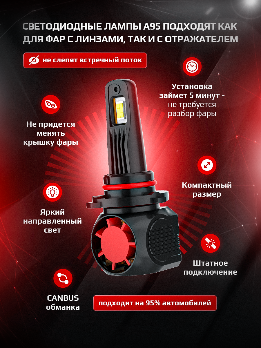 Купить Лед лампы автомобильные A95 HB3/HB4/HIR2 6300K с обманкой, HB3 LED с доставкой по всей России. Лед лампы автомобильные A95 HB3/HB4/HIR2 6300K с обманкой, HB3 LED: сравнение цен, характеристики, фото, актуальное наличие и цены.