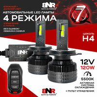 Купить LED лампы BNR Q7 Цоколь Н4 Ближний + дальний свет 12V 120W с пультом управления / 4 Режима / Яркий белый свет с доставкой по всей России.