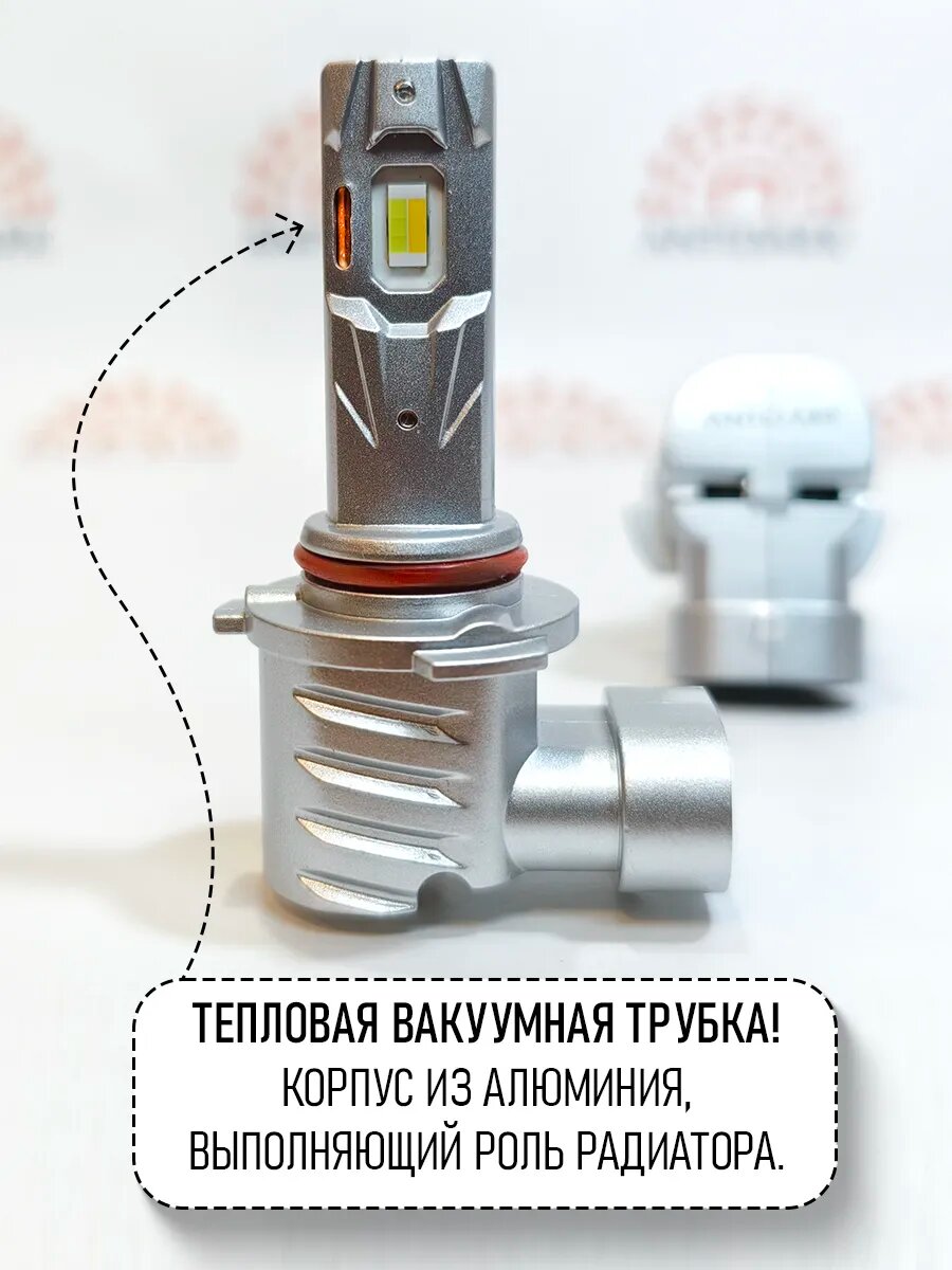 Лед лампы HB3 не имеют кулеров и иных подвижных частей, что позволяет их использовать в условиях повышенной загрязненности и влажности. Корпус ламп выполнен из алюминия, который выполняет роль радиатора. Также в лампах применена технология тепловых вакуумных трубок - это обеспечивает эффективное охлаждение и продлевает срок службы ламп.