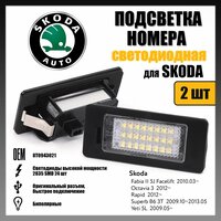 Купить LED подсветка номера Skoda Fabia Oktavia Rapid Superb Yeti светодиодная 2шт OEM 8T0943021 с доставкой по всей России.