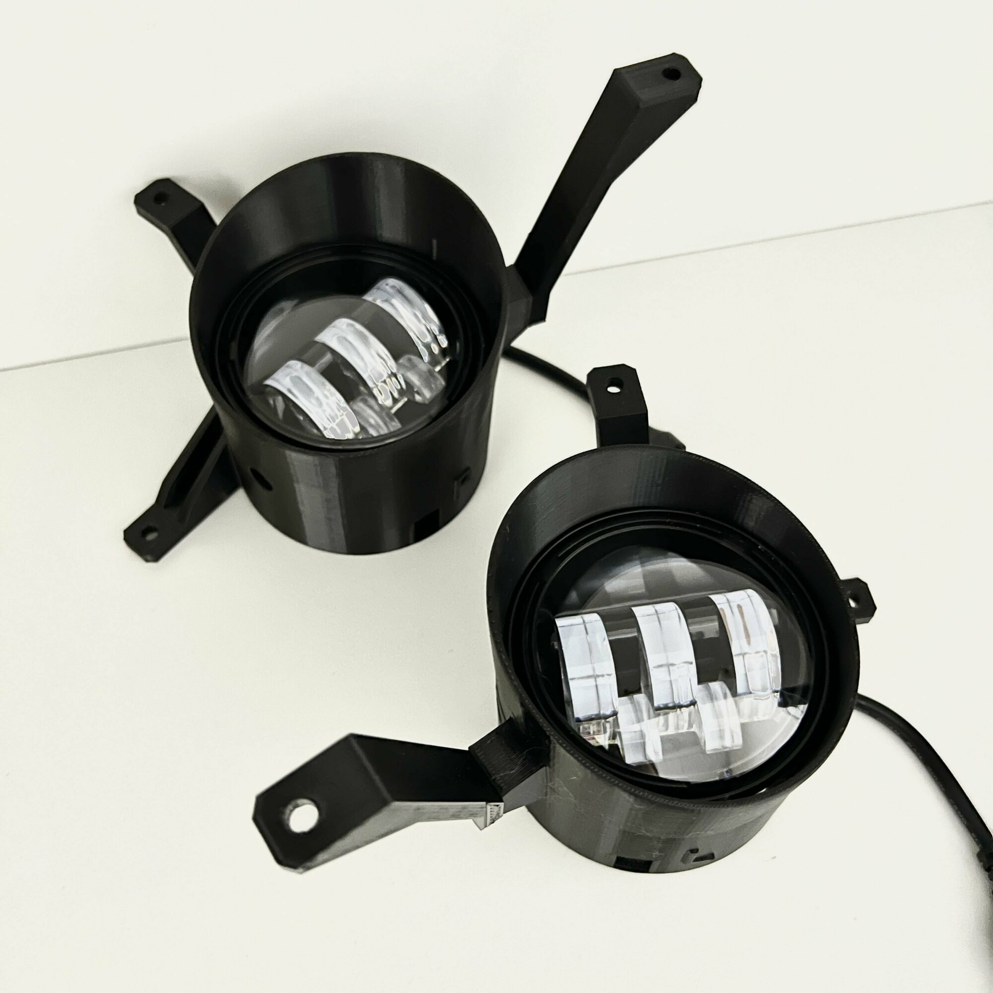 Мы занимаемся изготовлением противотуманных фар и моделированием кронштейнов под штатную установку для различных автомобилей, корпус изготовлен на 3D-принтере, при помощи сканирования оригинального бампера