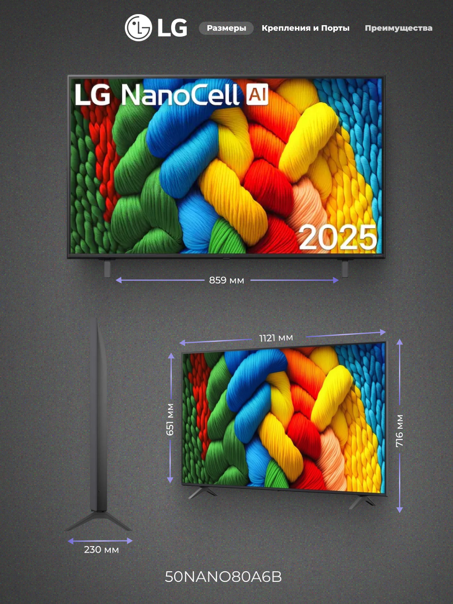 LED телевизор LG 50NANO80A6B, диагональ 50″, разрешение 4K UHD, технология экрана LED, 60 Гц: сравнение цен, характеристики, фото, актуальное наличие и цены.