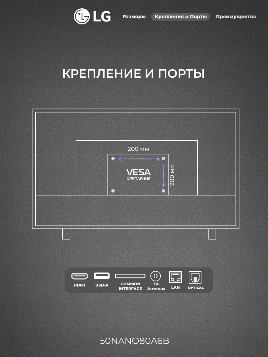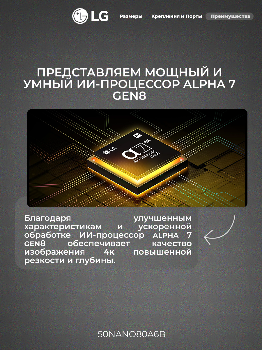 Купить LED телевизор LG 50NANO80A6B, диагональ 50″, разрешение 4K UHD, технология экрана LED, 60 Гц с доставкой по всей России.