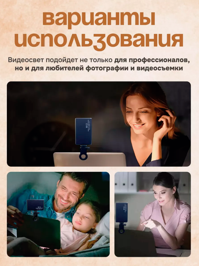 Видеосвет M12 для фото и видео, 90 LED, 1250LUX, Type-C, 2000 мАч, крепление в комплекте: сравнение цен, характеристики, фото, актуальное наличие и цены.