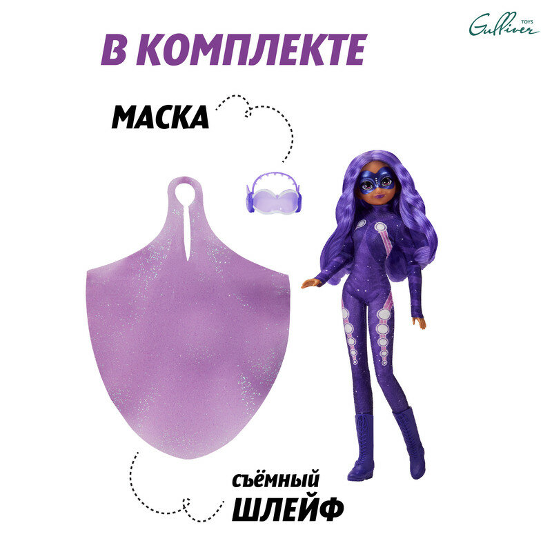 Вездесущая Леди – новый герой 5 сезона любимого мультфильма Леди Баг и Супер Кот. В параллельной Вселенной всё совершенно наоборот! Шейдибаг и Коготь Нуар используют Леди Баг и Супер Кота для своих злодейских планов! Чтобы остановить преступников, Ре-Аля трансформируется супергероя, способного открывать порталы – Леди Вездесущая. Теперь пришло время ей отправиться к Леди Баг в Париж и создать новую Чудесную команду в борьбе со злом! В наборе 1 кукла, 1 маска, 1 съёмный шлейф. Внимание! Не предназначено для детей младше 3-х лет!