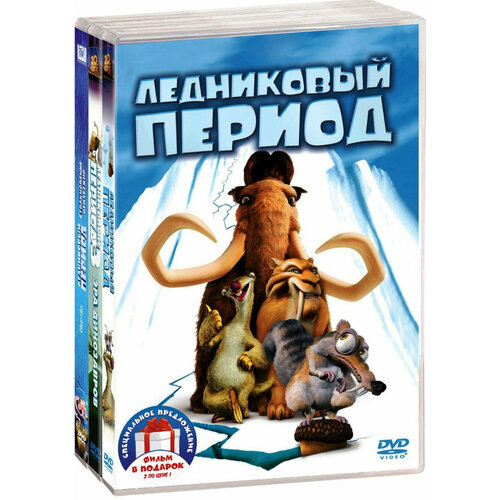 Описание сборника Ледниковый период. Полная коллекция: Еще больше Ледникового периода в коллекционном издании, которое включает четыре полнометражных фильма ( Ледниковый период , Ледниковый период 2. Глобальное потепление , Ледниковый период 3. Эра динозавров , Ледниковый период 4. Континентальный дрейф ), короткометражный мультфильм Ледниковый период. Гигантское рождество . Содержание сборника Ледниковый период. Полная коллекция: Ледниковый период Ice Age (2002 г, 78 мин.) Режиссер : Крис Уэдж Ледниковый период, 20000 лет назад нашу планету Земля населяют люди и животные. В один прекрасный день саблезубый тигр Диего (Дэнис Лири), лохматый мамонт Манфрид (Рэй Романо) и сумчатый ленивец Сид (Джон Легуизамо) находят в снегу на берегу реки человеческого ребенка. С этого момента три незнакомца становятся товарищами. Они объединяются вместе, чтобы пуститься в длинное опасное путешествие и вернуть ребенка людям. Каждый из троицы собирается вернуть человеческого детеныша по своим причинам: мамонт Манфрид - потому что страдает от не имея своей собственной семьи, ленивец Сид - потому что у него просто доброе сердце, а тигр Диего тешит этим благородным поступком свое изрядное самолюбие. В любом случае трое новых друзей вместе спешат навстречу опасностям. Чтобы вернуть потерянного ребенка человеческому племени им предстоит пройти ледяные пещеры, преодолеть потоки лавы, а также открыть друг другу свои потаенные секреты. Обладатель премии "Оскар" (2003 г.) в номинации "Лучший анимационный фильм". Ледниковый период 2. Глобальное потепление Ice Age 2: The Meltdown (2006 г, 87 мин.) Режиссер : Карлос Саладана Ледниковый Период подходит к концу и животные очень рады этому: райские водные парки из талой воды, гейзеры и рвы, заполненные горячей грязью. Наконец-то затянувшаяся зима начала уступать место долгожданной весне. Но когда Мэнни, Сид и Диего понимают, что таяние ледников угрожает потопом их родной долине, то они посчитали своим долгом предупредить всех об опасности и попытаться найти выход из столь сложной и опасной ситуации. Ледниковый период 3. Эра динозавров Ice Age: Dawn of the Dinosaurs (2009 г, 90 мин.) Режиссеры : Карлос Саладана, Майк Трумейер К событиям Ледникового периода 3 жизнь главных героев мультфильма потерпела некоторые изменения. Мамонты Манфред и Элли ожидают появление на свет своего детныша; саблезубый тигр Диего впал в раздумье о том, не стал ли он слишком "мягкотелым" в компании своих друзей; ленивец Сид, бредя желанием создать собственное племя, решился украсть несколько яиц динозавра. Отправившись спасать Сида, друзья попадают в таинственный растительный мир, скрытый под толщами льда, где они сталкиваются с динозаврами и агрессивной окружающей средой, а так же знакомятся с забавным маленьким охотником на динозавров - лаской по имени Бак. Крысобелка Скрэт (который вновь случайным образом стал виной глобальной проблемы, открыв путь в мир динозавров) по-прежнему гоняется за своим орехом, но на этот раз у него появился к