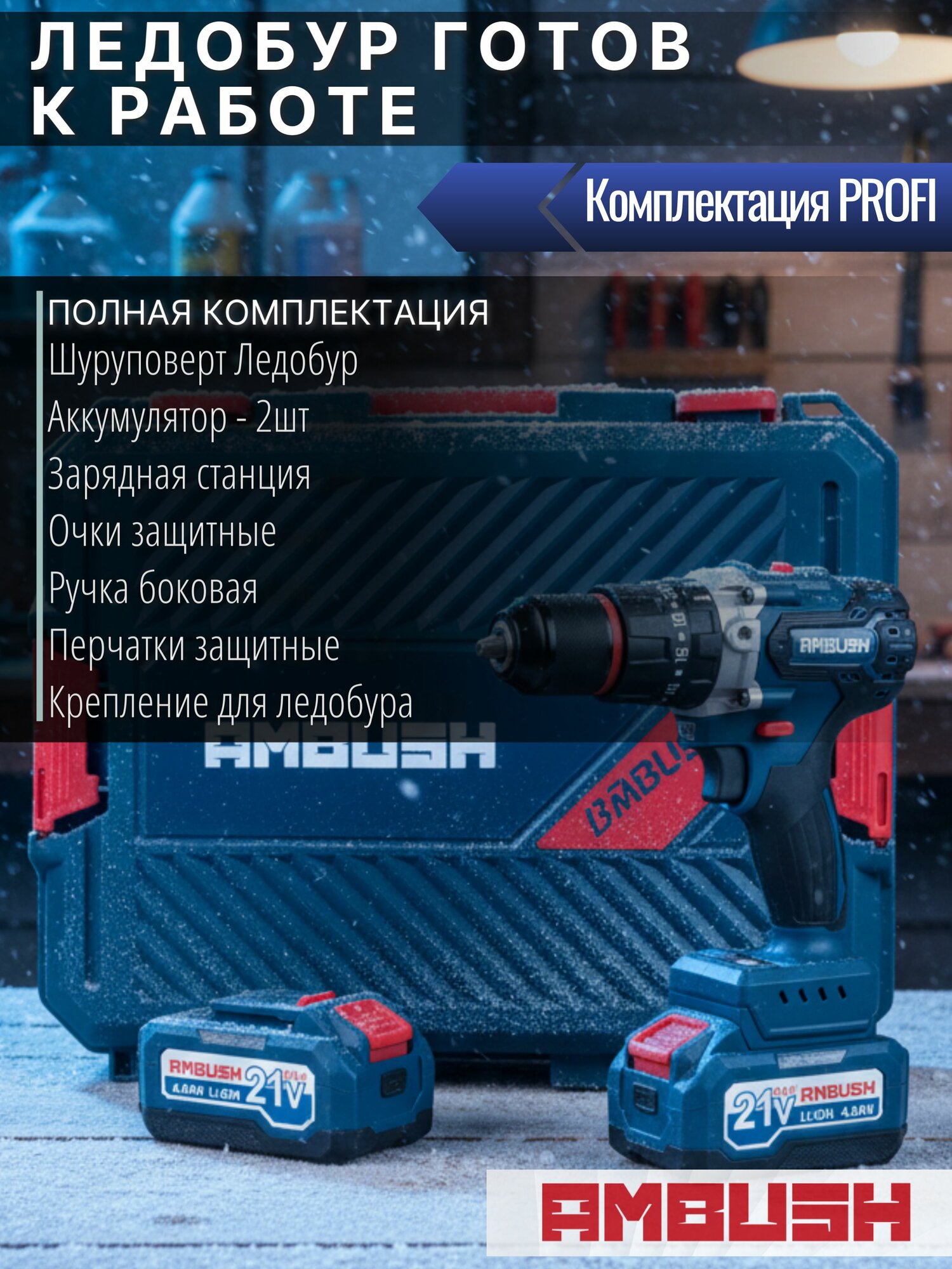Купить Ледобур-шуруповерт аккумуляторный AMBUSH бесщеточный 21В с доставкой по всей России. Ледобур-шуруповерт аккумуляторный AMBUSH бесщеточный 21В: сравнение цен, характеристики, фото, актуальное наличие и цены.