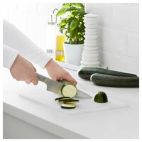 Доска разделочная пластиковая IKEA LEGITIM это идеальное сочетание долговечности и безопасности. Двухсторонняя разделочная доска изготовлена из прочного пластика, доска не впитывает запахи и не деформируется со временем. Благодаря своей устойчивости к деформации, она идеально подходит для нарезки различных продуктов. Несмотря на свою лёгкость (всего 300 грамм), доска икеа достаточно толстая и прочная, чтобы выдерживать вес продуктов и сохранять свою форму. Работать на обеих сторонах доски удобно и безопасно. Пластиковая поверхность легко моется и не впитывает запахи, что делает её гигиеничной и простой в уходе. Для удобства использования доска оснащена отверстием для подвешивания, что позволяет сэкономить место на кухне и облегчает хранение. Доска разделочная Икеа LEGITIM идеально подходит для использования с любыми видами ножей, включая керамические, и может быть легко очищена в посудомоечной машине. Этот практичный и стильный аксессуар станет незаменимым помощником на вашей кухне. Украсьте свою кухню с помощью набора досок икеа ведь они могут стать отличным подарком для тех, кто любит готовить. Интерьер продукции IKEA всегда отличается качеством, удобством и дизайном. Всё для кухни и для дома в целом вы найдете в нашем ассортименте товаров IKEA. Разделочная доска икеа Легитим 302.022.66 по артикулу каталога икеа