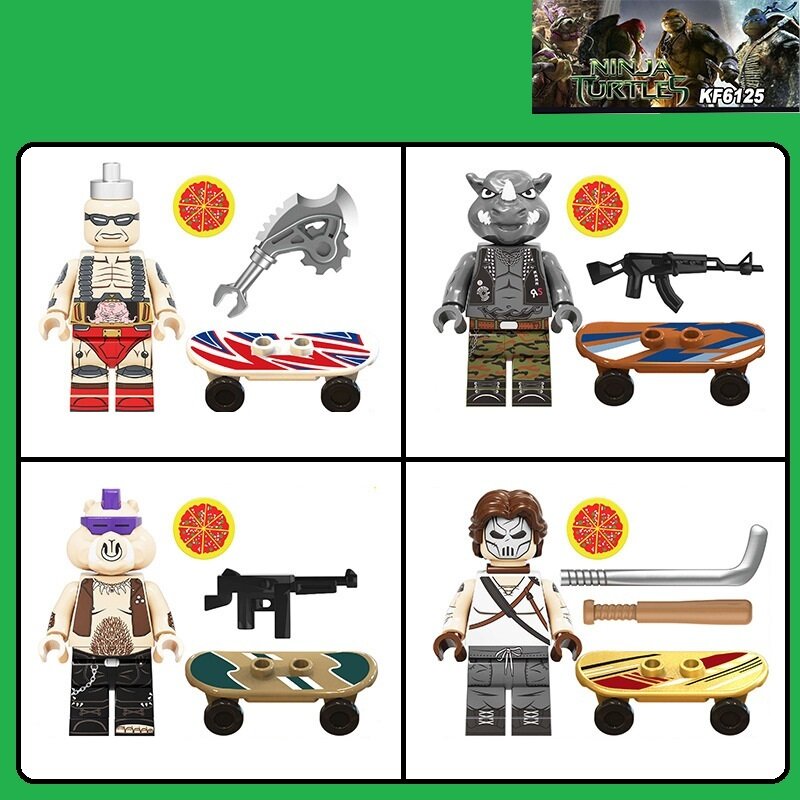 В набор " Черепашки Ниндзя" входят 14 всем известных персонажей, в том числе Шредер , Учитель Сплинтер , Крэнг , Кейси Джонс , Бибоп , Рокстеди и конечно главные герои: Рафаэль , Микеланджело , Донателло и Леонардо.