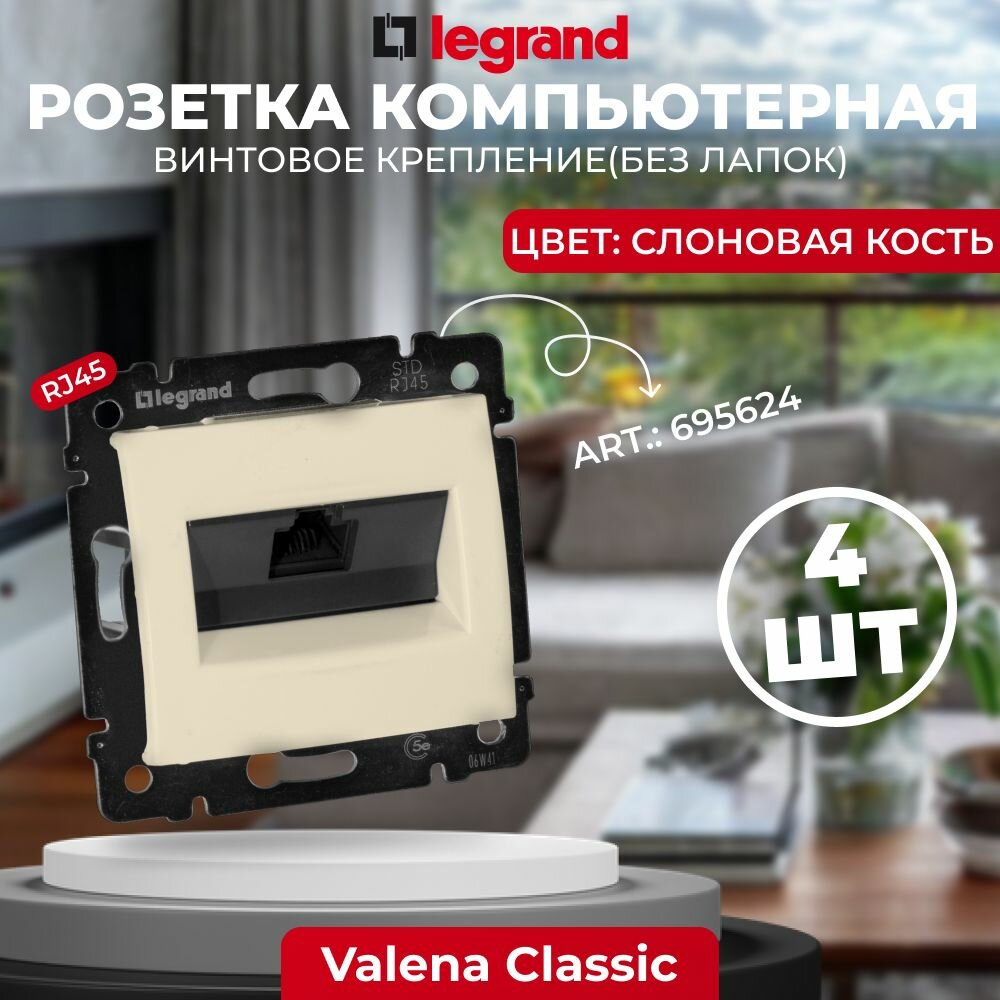 Legrand DIY Valena Крем Розетка комп(RJ45) 1-ая 5 крепление винт.(без лапок) 695624, 4 шт.: сравнение цен, характеристики, фото, актуальное наличие и цены.