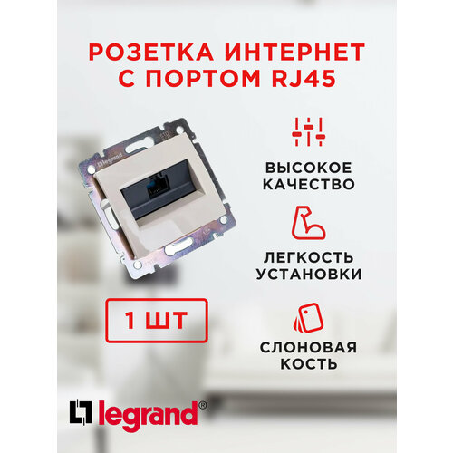 Розетка интернет с портом RJ45 Legrand Valena Слоновая Кость цвета — идеальное решение для организации современных сетей передачи данных в вашем доме или офисе. Этот электроустановочный элемент обладает высоким качеством, надежностью и долговечностью, что делает его отличным выбором для любых интернет- и сетевых подключений.