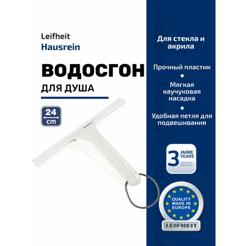 Идеально подходит для стеклянных и акриловых душевых кабин. Белое резиновое лезвие делает его пригодным для использования на светлой настенной и напольной плитке. Очень легкий, чтобы им было удобно пользоваться Практичный шнурок для подвешивания в душе Ширина рабочей части 24 см