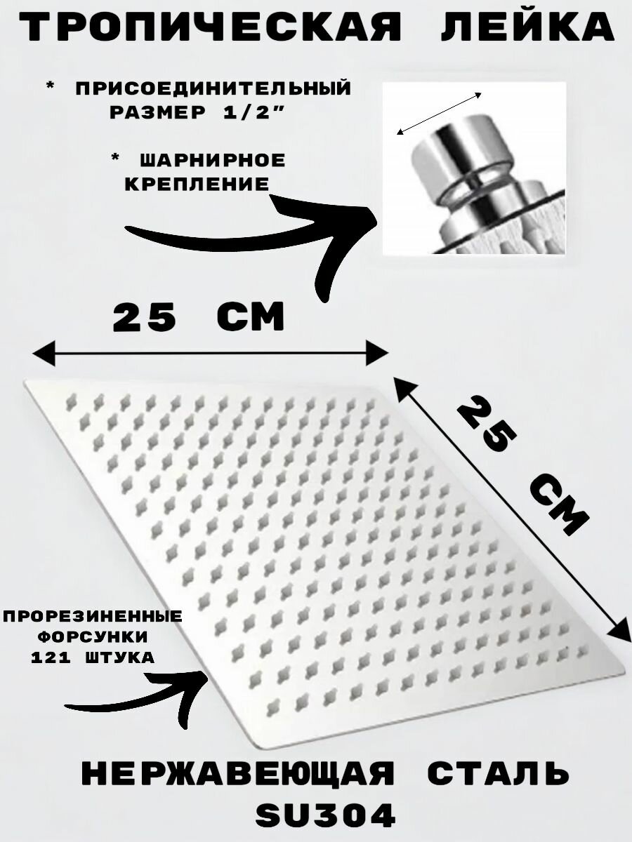 Лейка тропическая для душа OUTE потолочная квадрат 25х25 см глянцевый хром, с шарниром для изменения угла наклона.: сравнение цен, характеристики, фото, актуальное наличие и цены.