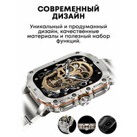 Умные часы для активных мужчин – спортивная влагонепроницаемаямодификация smart watch с большой диагональю и комфортным ремешком изперфорированного силикона. Располагает базовым набором функций для занятийспортом: шагомер, счетчик калорий и измерения расстояний. Просто запускайтеподходящий мультиспортивный режим и начинайте тренировку. По окончаниисмарт-часы выведут уведомление о прогрессе и показателях на экран.Аксессуар совместим с любыми телефонами на Андроид с версией блютуз 5,1.Ключевые особенности девайса: встроенные голосовой динамик и микрофон; возможность принять илиотклонить вызов; сочная живая картинка даже на ослепительно-ярком солнце, благодарядисплею Amoled Retina; крутой интерфейс, качественная сборка и емкий аккумулятор на 400 мАч; водонепроницаемая оболочка корпуса IP67; фитнес-трекер не пропускаетпыль, выдерживает погружение на глубину до 1 м; высокопроизводительный чип HR3605 для более точного мониторингасостояний здоровья; сменные электронные циферблаты и настраиваемое меню для удобнойработы. доступны будильник, таймер и ежедневный прогноз погоды; функциональная заводная головка, работающая как кнопка навигации дляперемещения между иконками приложений.Освобождает от необходимости держать средства связи под рукой. Достаточнопросто синхронизировать устройства, после чего сообщения мессенджеров извонки будут доступны на смарт-вотч. Управляет музыкальным плееромтелефона, осуществит поиск потерявшегося смартфона и найдет его в пределахквартиры.Модель выполнена в сдержанно-брутальном дизайне и подходит дляпредставителей любой возрастной группы - от младшего брата и папы долюбимого дедушки. Мониторит стадии сна, измеряет артериальное давление,контролирует уровень кислорода в крови. Отличный подарок мужу и другу к 23февраля. Приятный и полезный сюрприз для мужской половины на Новый год,юбилей, годовщину свадьбы, день влюбленных.Обращаем внимание! Smart watch не являются профессиональным медицинскимприбором. Данные смарт-часов не могут быть использованы для диагностики иустановления диагноза.