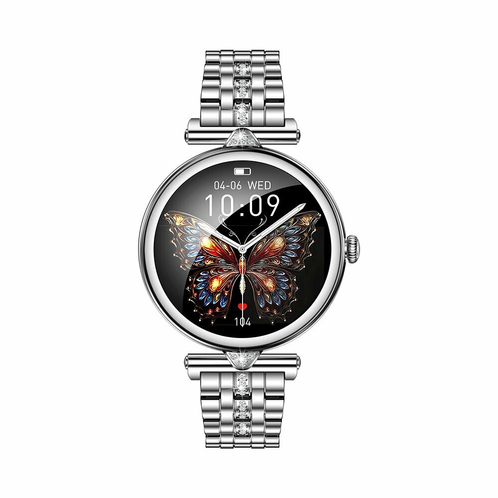Lemfo Смарт часы женские круглые AK73 для Android и Iphone водонепроницаемые с двумя ремешками в комплекте (Серебристый)