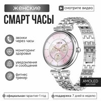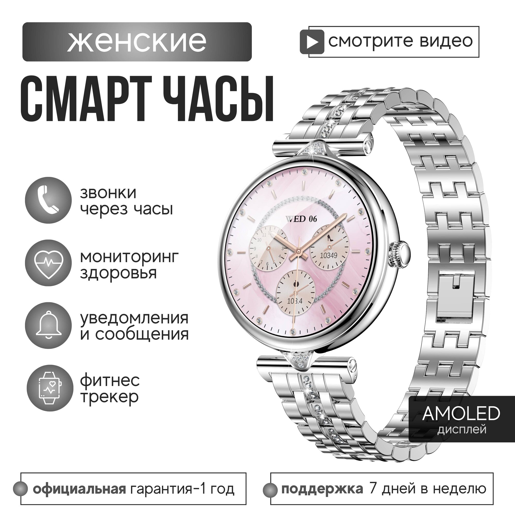 Купить Lemfo Смарт часы женские круглые AK73 для Android и Iphone водонепроницаемые с двумя ремешками в комплекте (Серебристый) с доставкой по всей России.