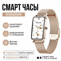 А вот и они - идеальные женские смарт-часы для Андроид (Android) и для Айфон (Iphone) в актуальном нескучном дизайне. Знакомься - умная сенсорная модель на руку с влагозащищенностью IP68 и расширенным функционалом. Создана с учетом темпов жизни современной девушки. Стильный корпус дополняет плетеный наручный браслет в стиле «Миланская петля» из нержавеющего сплава. Поэтому изделие выглядит, как дорогой аксессуар, и сочетается даже с вечерним образом.