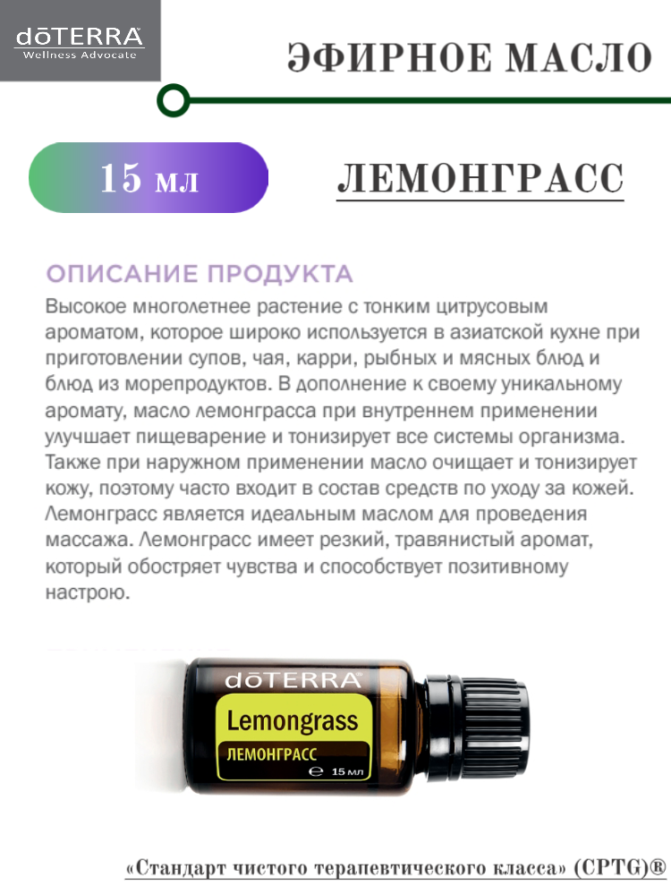 Лемонграсс 15 мл, натуральное эфирное масло doTERRA, оригинал, для массажа: сравнение цен, характеристики, фото, актуальное наличие и цены.