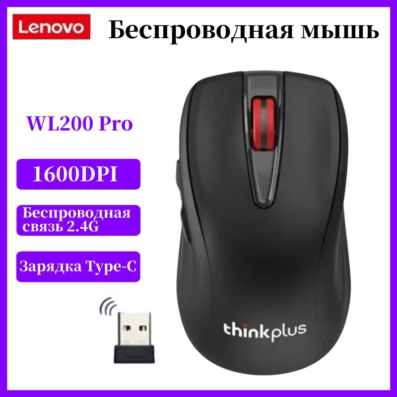 Купить Lenovo Mouse WL200Pro Беспроводная мышь, Офисная мышь, 1600DPI, Матовый черный с доставкой по всей России.