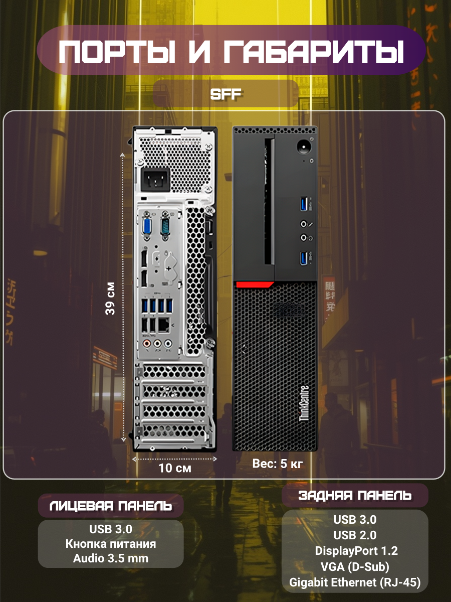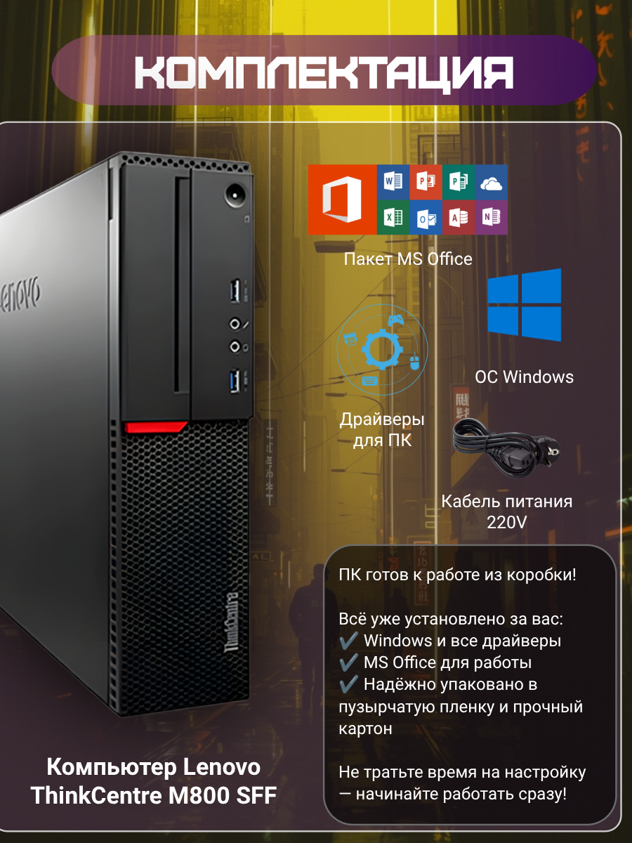 ThinkCentre M800 SFF (Small Form Factor) – это компактный, но мощный бизнес-ПК от Lenovo, предназначенный для корпоративных пользователей, офисной работы и задач средней производительности. Благодаря продуманной конструкции он сочетает в себе энергоэффективность, надежность и удобство обслуживания.