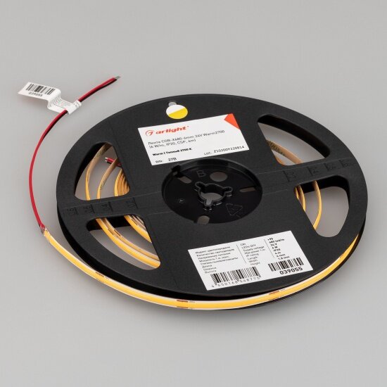 Светодиодная лента сплошного свечения COB серии X480. Светодиоды CSP, 480 шт/м, белая плата шириной 6 мм, скотч 3M. Цвет теплый 2700K, индекс цветопередачи CRI>90, угол 180°. Питание 24 В, мощность 6 Вт/м (30 Вт на 5 м). Размеры 5000х6х1.8 мм. Мин. отрезок 50 мм. .