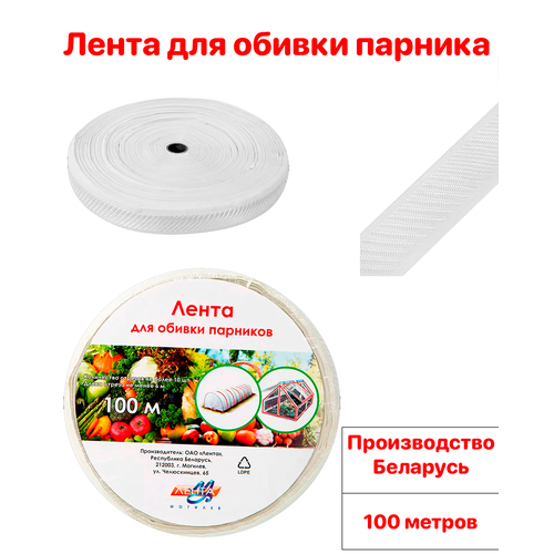 Лента имеет ширину 3,5 см и длину 100 метров, что позволяет легко и удобно обернуть и закрепить плёнку вокруг теплицы. Она проста в установке и не требует особых навыков или инструментов. Прочные крепления гарантируют надежность и устойчивость плёнки в любых погодных условиях, от ветра до снега.