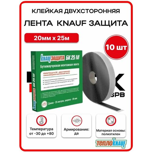 Лента клейкая двухсторонняя бутилкаучуковая KNAUF Защита 20 мм х 25 м, 785078 — 10 шт: сравнение цен, характеристики, фото, актуальное наличие и цены.