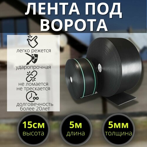 Лента под ворота высота Н-15 см (толщ. 5 мм/5 метров) - это идеальное решение для закрытия щели под воротами. Она изготовлена из прочной резины и имеет высоту 15 см, что позволяет ей эффективно выполнять свою функцию.