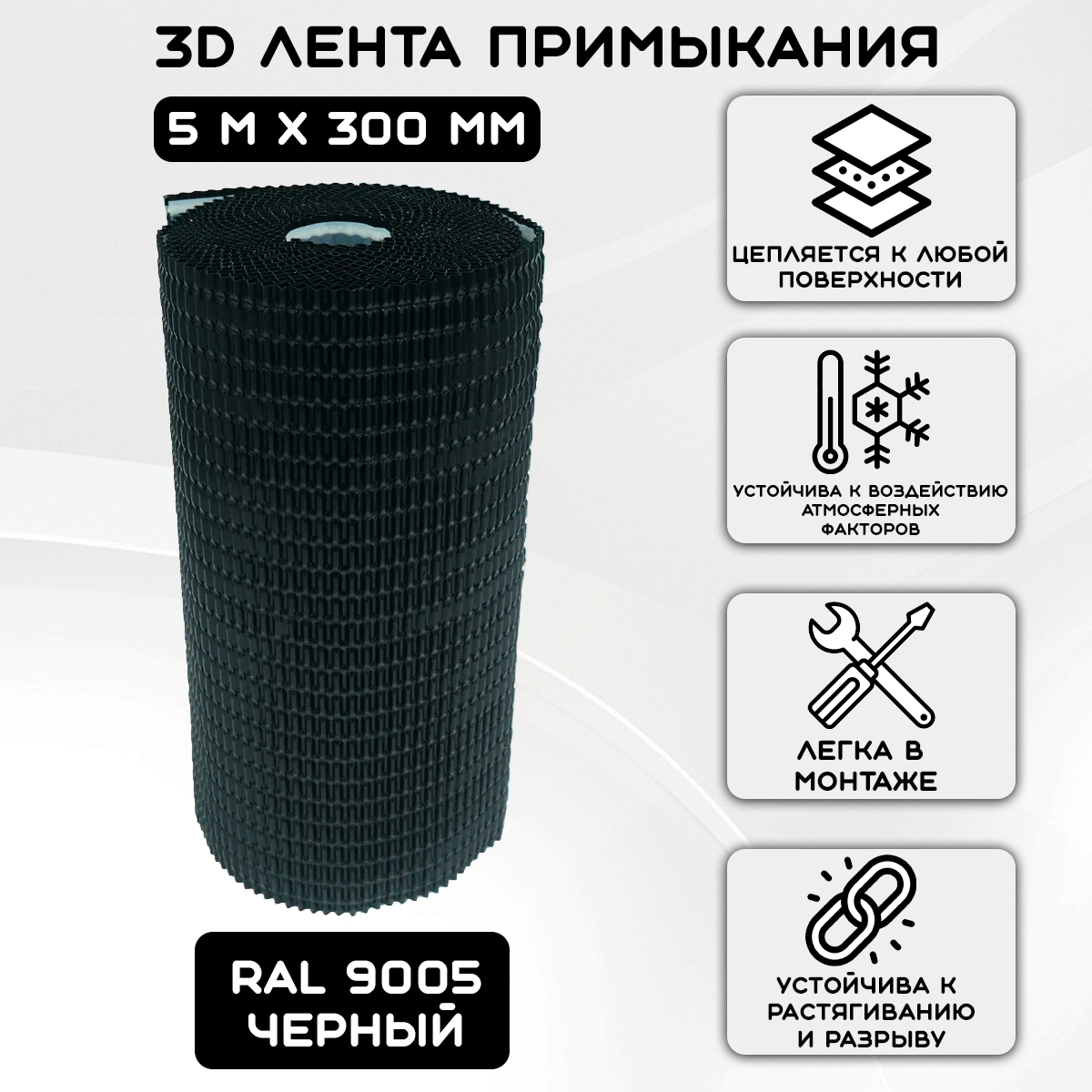 Название товара: Лента примыкания 3D Б, 0,3 x 5 м, RAL 9005, черный