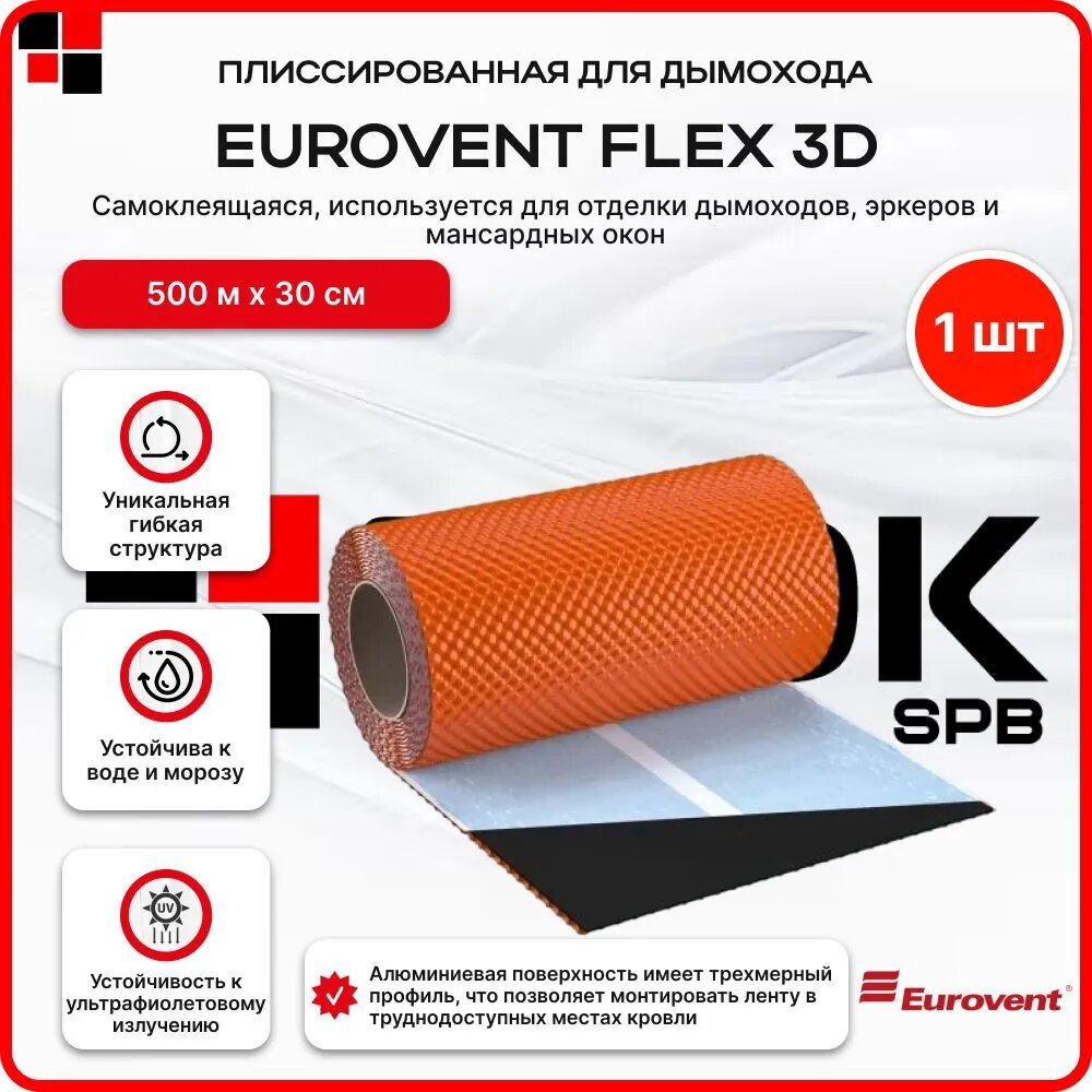 Лента примыкания плиссированная EUROVENT FLEX 3D, 300мм х 5п. м. RAL 8004 (кирпичный): сравнение цен, характеристики, фото, актуальное наличие и цены.