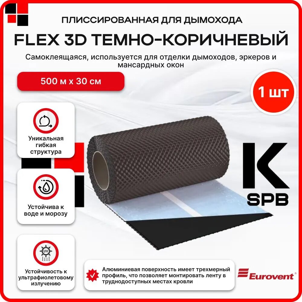 Лента примыкания плиссированная EUROVENT FLEX 3D, 300мм х 5п. м. RAL 8019 (темно-коричневый): сравнение цен, характеристики, фото, актуальное наличие и цены.
