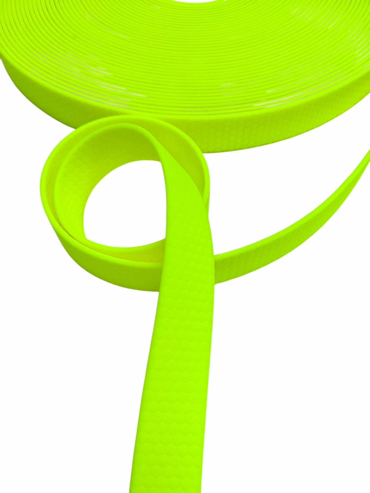 Лента — стропа биотановая лимонный-неон, соты, шириной 2,5 см, 5 метров, для поводков, ошейников и сбруй