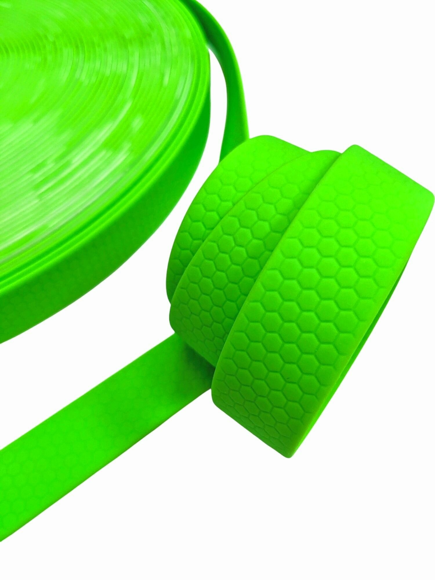 Лента — стропа биотановая зеленый-неон, соты, шириной 2,5 см, 5 метров, для поводков, ошейников и сбруй