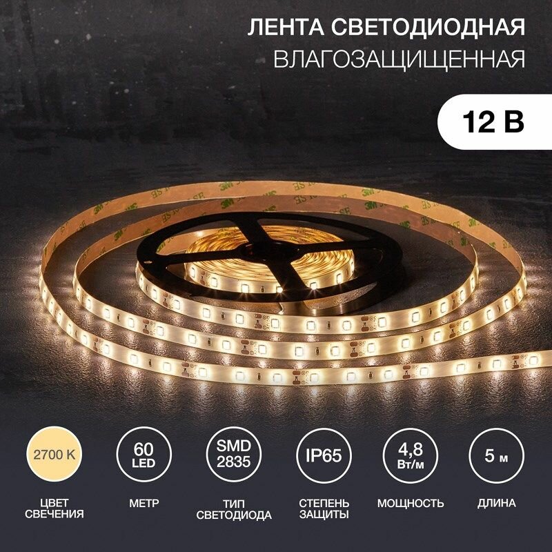 Лента светодиодная 12В SMD2835 2700К, 5м, для БП с клеммами, IP65 LAMPER: сравнение цен, характеристики, фото, актуальное наличие и цены.