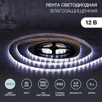 Лента светодиодная 12В SMD2835 6500К, 5м, для БП с клеммами, IP65 LAMPER